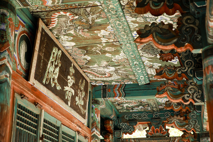 기둥머리 이상의 모든 벽면에 천장과 벽에는 용과 봉, 해와 달, 학과 일각수, 소나무와 영지, 연과 구름 등 다양한 채색 금단청과 매우 수준 높은 벽화가 가득하다. 대한제국 황실을 상징하는 여러 도상들이 풍부하여 역사적 가치가 높으며, 같은 시기에 건축된 기념비전의 건축과 왕릉 비각의 형식 변화등과 함께 대한제국기 황실 전범에 따른 변화상황을 증거하는 자료가 된다.