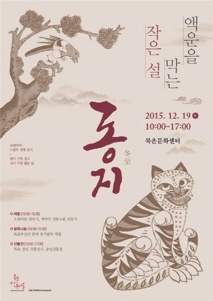 행사에서는 우리 고유 절기인 동지를 맞아 잡귀나 해를 막고 다가오는 새해의 무사안일을 기원하는 다양한 프로그램이 진행될 예정이다.