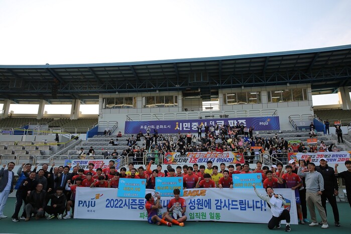 [로컬세계 = 이영원 기자]이은노 감독이 이끄는 파주시민축구단(구단주 김경일, 단장 김상국)이 지난달 29일 치러진 화성 FC와의 22년 K3리그 최종전에서 3:0으로 승리해 우승팀과 승점 1점 차로 값진 준우승을 기록했다.