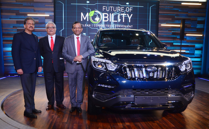 ▲지난 8일(현지시간) 인도 델리 모터쇼(Auto Expo 2018) 프레스데이를 통해 G4 렉스턴을 인도 시장에 처음으로 선보였다. 사진 왼쪽부터 아난드 마힌드라 그룹 총괄회장, 라잔 와드헤라 M&M 자동차부문 사장, 파완 고엔카 M&M 대표이사. |