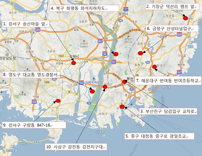 [로컬세계 맹화찬 기자]부산경찰청은 경찰에서 운영하는 고정식ㆍ이동식 무인단속장비 단속 건수를 분석, 각각 상위 10개 지점을 발표했다.