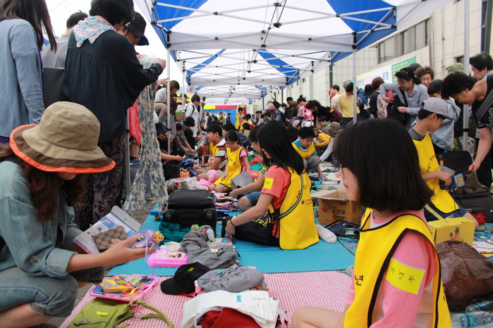 ▲청소년들이 벼룩시장에서 더 이상 사용하지 않는 물품들을 판매하고 있다. |