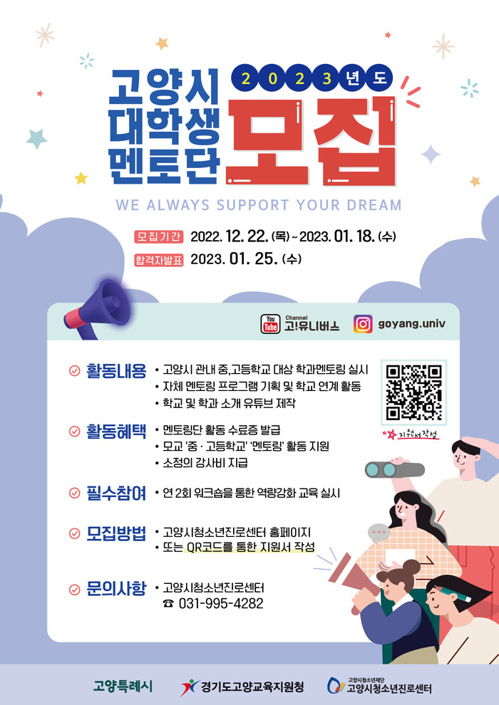 [로컬세계 = 이영원 기자]경기 고양특례시(시장 이동환) 청소년진로센터가 1월 18일까지 2023년 ‘고양유니브’를 모집한다.