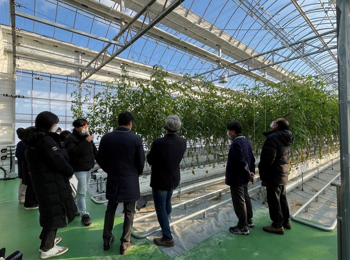 | ▲관내 스마트농업(토마토 재배) 기술 및 장비를 설명하고 있는 모습. |
