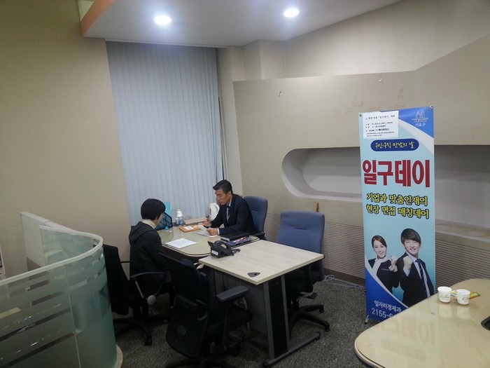 ▲서초형 소규모 박람회 ‘일구데이’에 참여한 구직자가 면접을 보고 있다. |