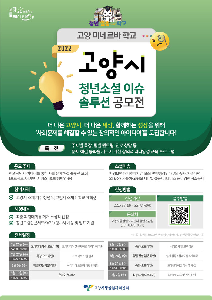 | ▲ 고양미네르바학교-청년소셜이슈 공모전 안내문. 고양시 제공 |