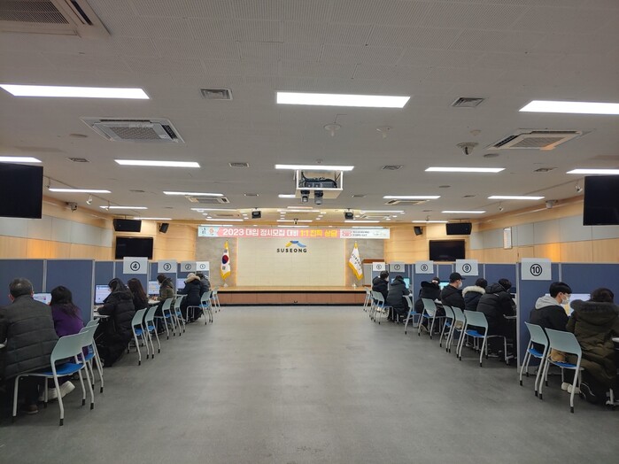 ▲ 지난 24일부터 26일까지 수성구청 대강당 및 범어2동 커뮤니티센터에서 진행된 2023년도 대입 정시 대응을 위한 1:1 진학상담 부스. 수성구 제공 |