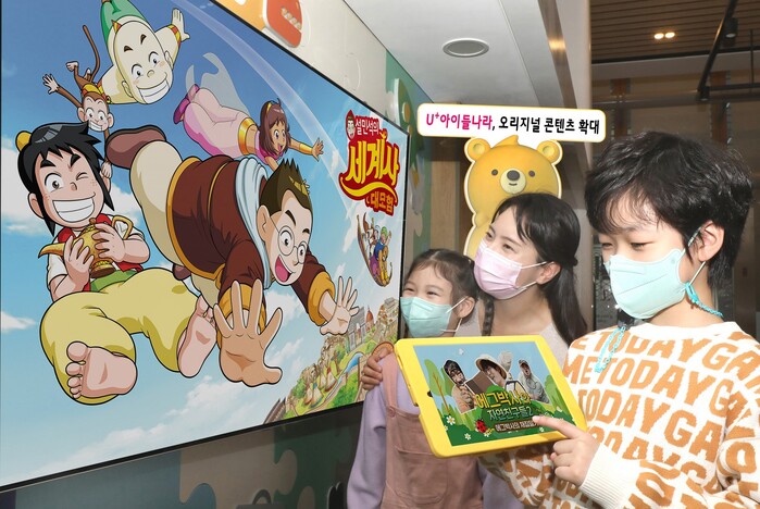 ‘설민석의 세계사 대모험’은 세계사 도서를 애니메이션으로 제작한 콘텐츠다. 누적판매 500만부 이상의 어린이 베스트셀러 1위인 설민석의 역사 시리즈를 원작으로, 도서 콘텐츠에 움직임과 효과를 더해 생동감을 주는 '무빙툰' 형식으로 완성해 아동의 몰입감을 높였다. 도서 5권 분량으로 제작된 콘텐츠는 매주 U+아이들나라를 통해 업로드될 예정이다. 이 콘텐츠는 공개 전부터 U+아이들나라 이용자 커뮤니티인 ‘유플맘살롱’을 통해 입소문이 나는 등 기대를 모으고 있다.