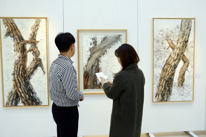 특히 이번 전시회에서 만날 수 있는 회화작품들은 지점토 혼합재료, 도자기 가루, 한지 등 독특한 재료를 사용해 자연에서 쉽게 볼 수 있는 눈, 나무, 돌을 그려내고 있어 전시장을 찾은 관람객들로부터 많은 관심을 받고 있다.