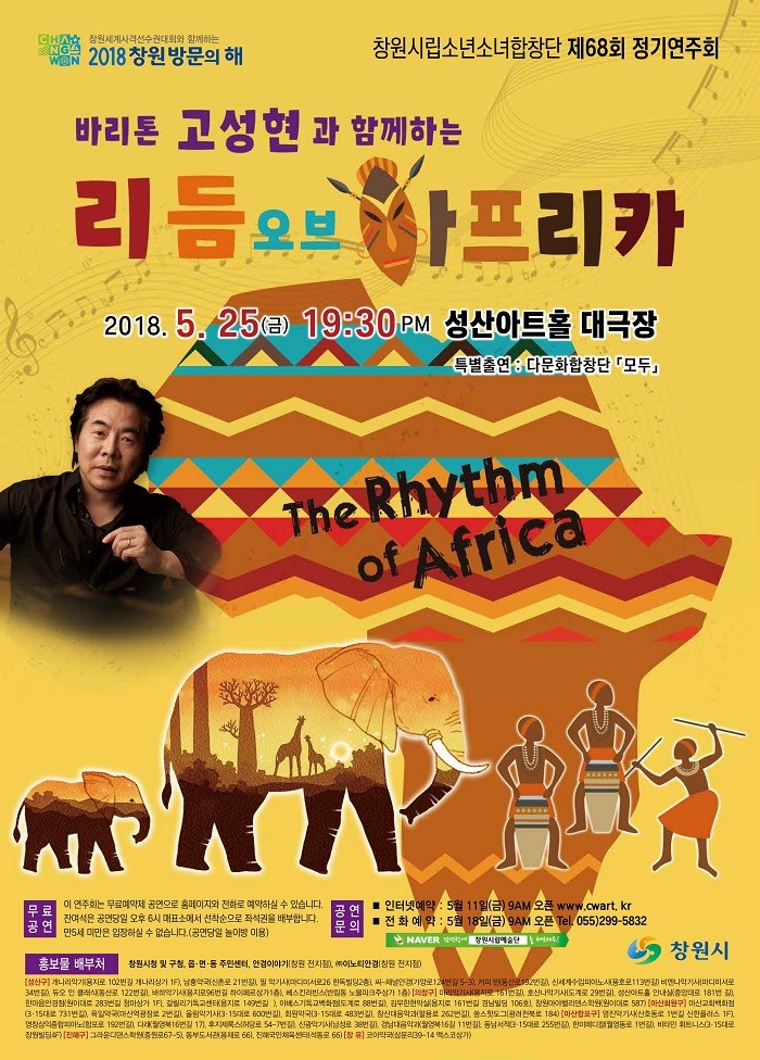 창원시립소년소녀합창단의 ‘리듬 오브 아프리카’는 합창의 깊은 감동, 조화로운 다문화, 동심의 세계, 아프리카로의 시간여행이 함께 하는 가족음악회가 될 것이다.