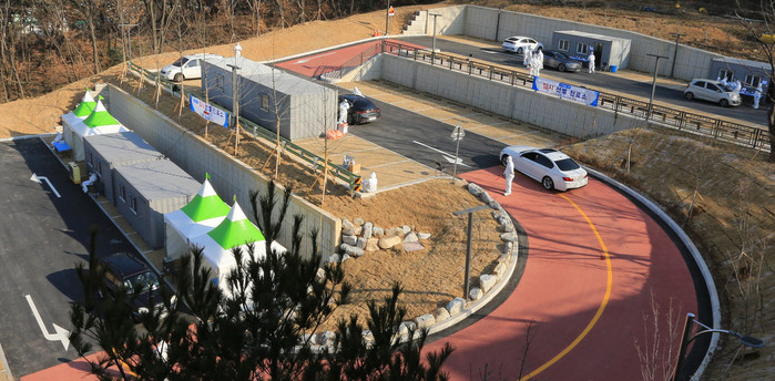 드라이브 스루 선별진료소는 의사 2명과 간호사 12명, 군인 19명 등 37명이 근무하며, 오전 10시부터 오후 5시까지 운영한다.