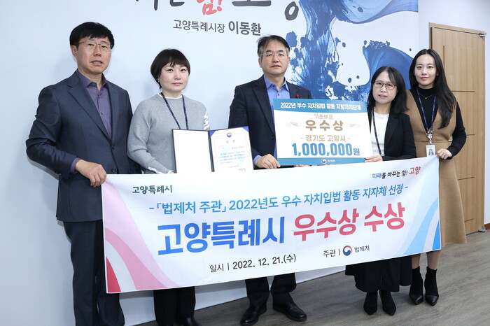 [로컬세계 = 이영원 기자]경기 고양특례시가 지난 21일 법제처에서 주관한 ‘2022년 우수 자치입법 활동 지자체’로 선정돼 우수상을 수상했다고 23일 밝혔다.