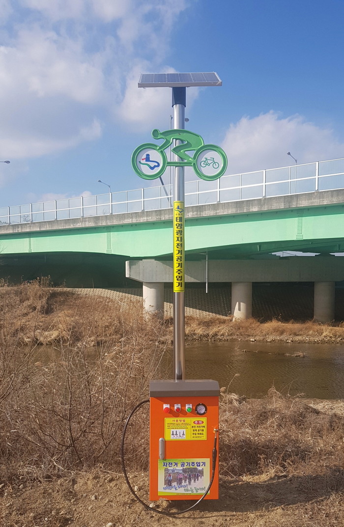 수원시는 황구지천 내 황구지교·장수천교 인근 산책로(2개소)에 태양광 자전거 공기주입기를 1대씩 설치했다.