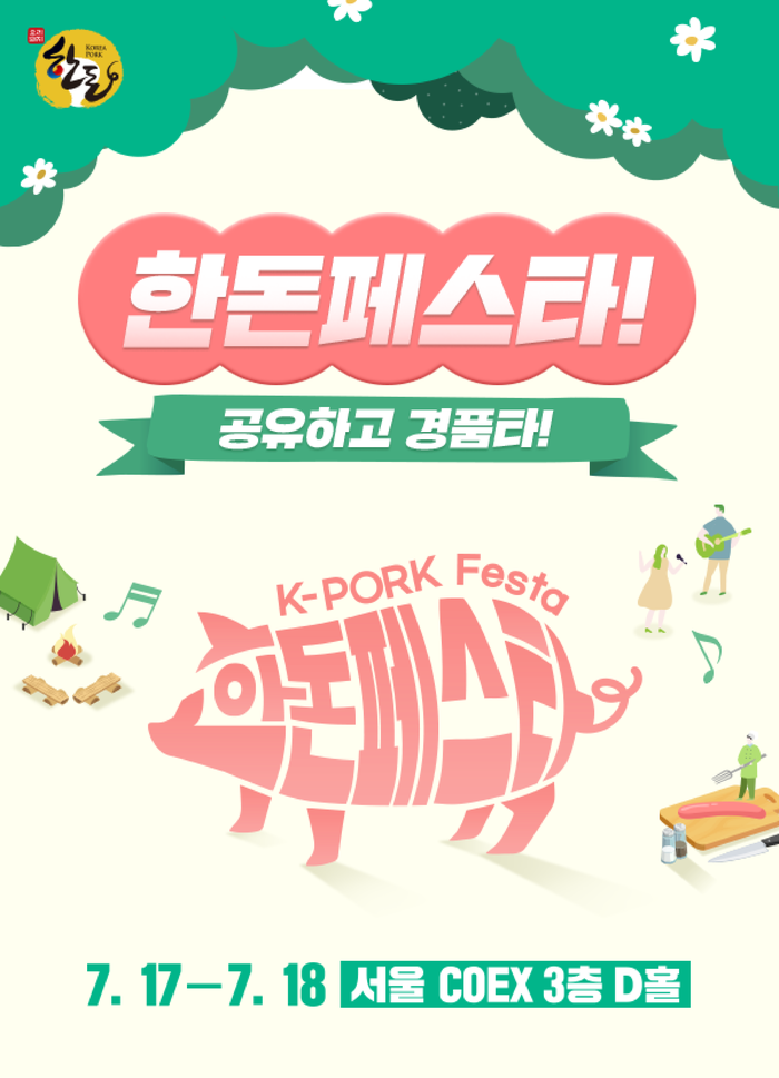 한편 ‘한돈의 즐거움이 한 곳에, 한돈페스타!’는 7월 17일부터 7월 18일까지 양일간 서울 코엑스 D홀에서 개최되며 한돈 ESG 비전 선포식, 한돈 대상 시상식, 한돈 기부 전달식을 비롯, 한돈 신선육 및 가공육 등 할인 판매, 시식, 전시, 쿠킹클래스, 축하공연 등 소비자들의 애정과 신뢰에 보답하기 위한 다채로운 체험거리 및 프로모션을 마련 중에 있다.
