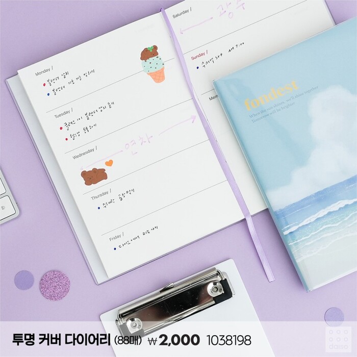 ▲(주)아성다이소 PP투명 커버 다이어리 |