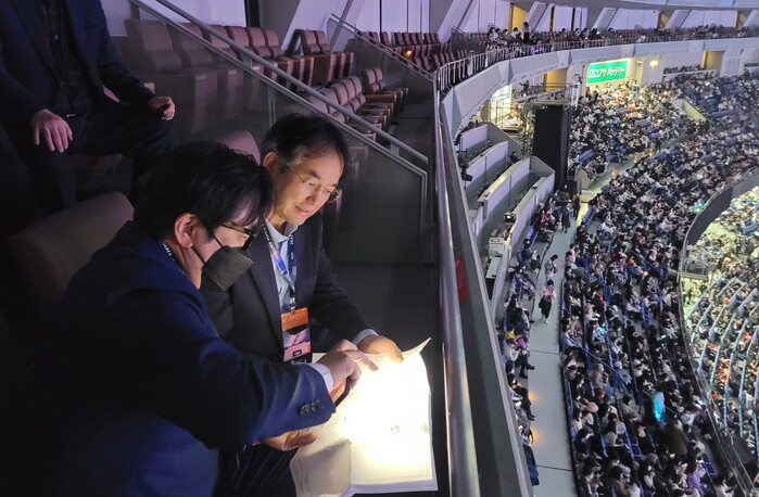 | ▲ 이동환 고양특례시장, 마이클 피츠모리스 AEG 아시아 부사장, 신형관 CJ라이브시티 대표가 30일 2022 MAMA AWARDS(2022 마마 어워즈)가 개최된 일본 오사카 교세라돔을 방문했다. 고양시 제공 |