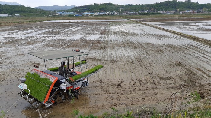 [로컬세계 박상진 기자]경북 의성군 구천면 김일문(58세)농가가 유산리 일원 약 2ha 논에서 30일 첫 모내기를 시작했다.
