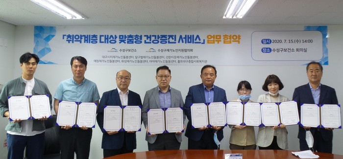 [로컬세계 박세환 기자]대구 수성구보건소는 지난 15일 대구시지재가노인돌봄센터 등 7개 기관과 취약계층 대상 맞춤형 건강증진 서비스 제공을 위한 업무 협약을 체결했다고 16일 밝혔다.