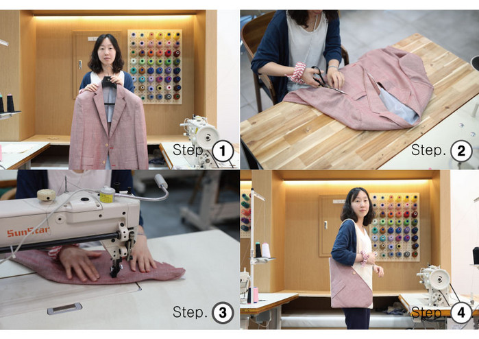 해운대구의 ‘업사이클 클로젯 프로젝트’는 장롱 속에 잠자고 있는 옷에 날개를 달아주는 활동으로, 주민들이 입지 않는 옷을 가지고 기술교육원을 찾으면 간단한 봉제교육을 통해 자신이 원하는 디자인으로 업사이클 가방을 만들 수 있다.