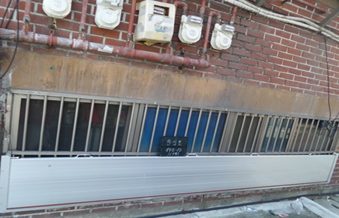 ▲반지하주택 창문에 물막이판이 설치돼 있다. |