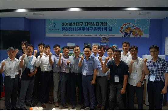 대구시는 지난 22일 대구삼성라이온즈파크에서 ‘2019년 신규 대구 지역스타기업’ 대표, 대구시 및 기업지원 관계자 등 30여명이 참석한 가운데, 프로야구 경기를 관람하며 어려운 경영환경에 처한 지역기업들의 애로사항을 청취하고, 지원방안 모색과 임직원 격려 등을 실시하는 ‘위기극복 소통 교류회’를 개최했다.