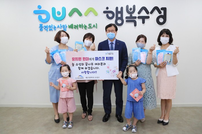 [로컬세계 박세환 기자]대구 수성구는 최근 유치원 등원에 맞춰 어린이용 마스크 5만5000매와 손 소독제 등 방역물품 3500개를 관내 유치원 47개소에 전달했다고 11일 밝혔다.