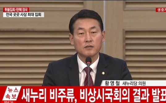▲새누리당 황영철 의원이 비상시국위원회 회의와 관련해 기자회견을 하고 있다. 사진은 YTN 화면캡쳐. |