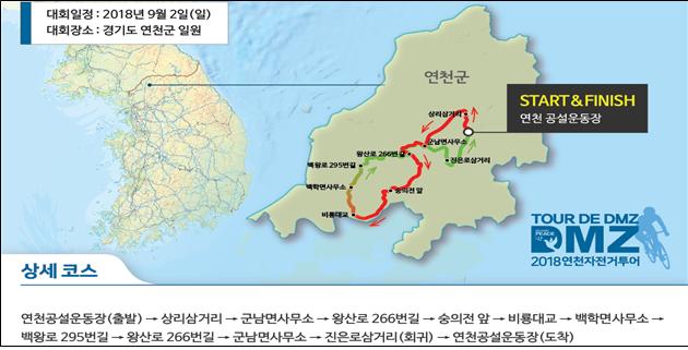 무엇보다 주목할 만한 행사는 9월 2일 경기도 연천 DMZ 일원에서 열릴 'Tour de DMZ 2018 연천 자전거투어'다. 이 대회는 전문 선수뿐만이 아니라 국내 자전거 일반 동호인이라면 누구나 참가할 수 있도록 행사를 구성한 것이 특징이다.