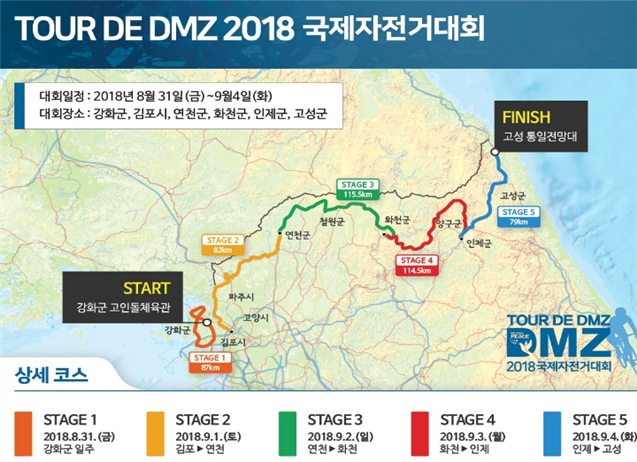 [로컬세계 고기훈 기자]평화를 넘어 미래를 꿈꾸는 세계인의 자전거 축제 '뚜르 드 디엠지(Tour de DMZ) 2018 국제자전거대회'가 오는 8월 31일부터 9월 4일까지 닷새간 비무장지대(DMZ)와 접경지역에서 개최된다.