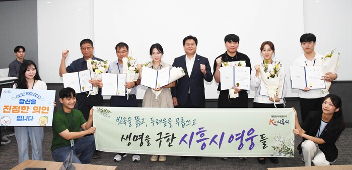[로컬세계=김영호 기자] 임병택 시흥시장이 집중호우로 침수 차량에 고립된 시민을 적극적인 인명구조 활동으로 구한 공무원들에게 표창을 수여했다.