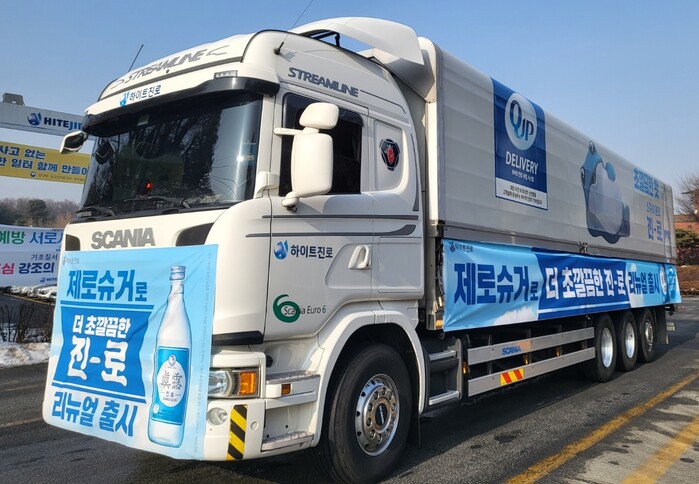 ▲하이트진로는 10일 첫 출고를 위해 제로슈거 진로를 차에 싣고 있다. |