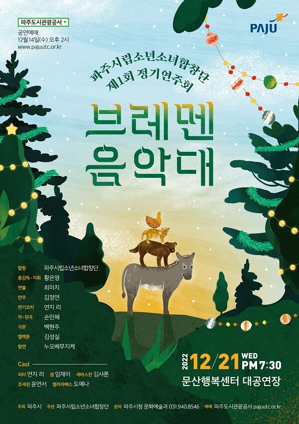 [로컬세계 = 이영원 기자]경기 파주시(시장 김경일)는 오는 21일 문산행복센터 대공연장에서 파주시립소년소녀합창단 제1회 정기연주회 ‘브레멘 음악대’ 공연을 선보인다.