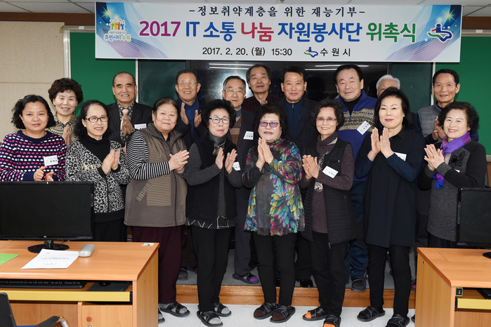 [로컬세계 주덕신 기자]경기 수원시는 지난 20일 시청 정보화교육장에서 ‘IT 소통 나눔 자원봉사단’ 위촉식을 열고 단원 18명을 위촉했다.