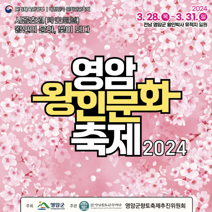 [로컬세계=박성 기자]2024년 영암에서 열리는 영암왕인문화축제는 우리나라를 대표하는 봄 축제이자 문화관광축제 중 하나로 3월 28일 춘향대제를 시작으로 31일까지 이어진다. 올해 축제 주제는 시공초월(時空超越)이다. 지난 해 코로나19 엔데믹을 통해 재개한 축제가 ‘인문’을 주제로 페러다임 변화에 주안점을 두었다면 올해는 왕인의 문화교류와 전파를 중점으로 ‘인문’이라는 주제를 다채롭게 녹여내어 축제의 내적·질적 변화를 추구한다.