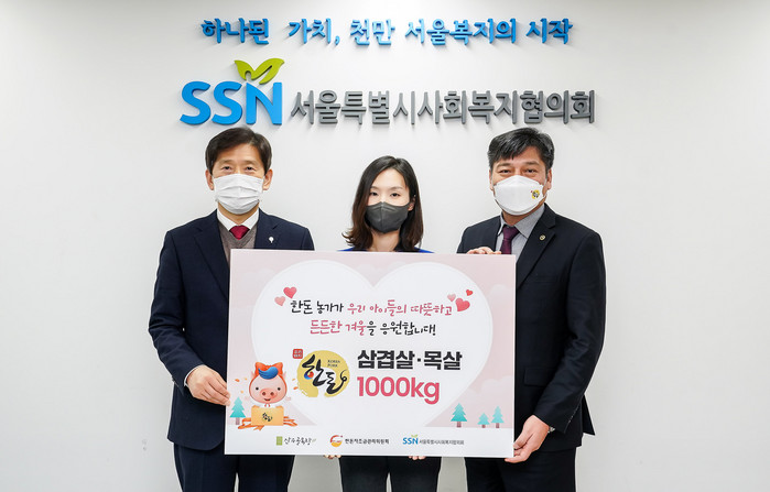 이날 기부 전달식에는 한돈자조금 손세희 위원장, 서울시사회복지협의회 김현훈 회장, 산수골 최수아 본부장을 비롯한 관계자들이 참석했다.