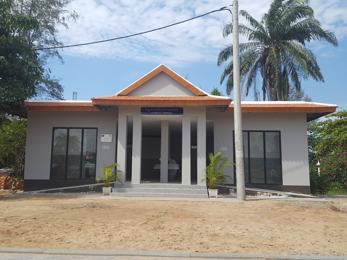 | ▲수원시와 세계화장실협회가 협력해 지난 4월 캄보디아 시아누크빌 해변에 설치한 수원화장실 모습. |