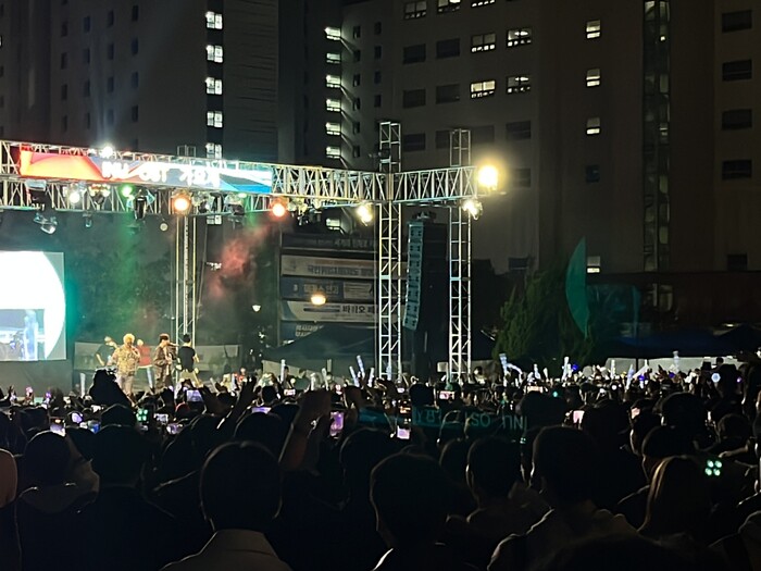 ▲관중들이 응원봉과 팔을 흔들며 공연을 즐기고 있다. |