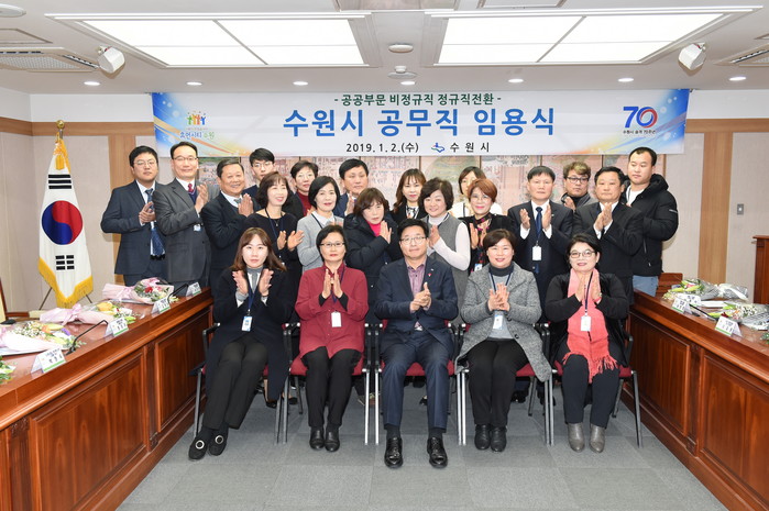 수원시는 2019년 1월 1일 자로 60세 미만 비정규직 근로자 255명을 공무직으로 전환 임용하고, 정년(60세)을 경과한 113명은 촉탁 계약직으로 채용했다.