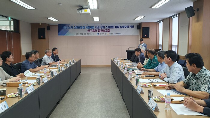 [로컬세계=박상진 기자]경북 의성군은 지난 22일 ‘의성 노지 스마트농업 시범사업 시설·장비 스마트화 세부 실행모델 개발’ 중간보고회를 개최했다.