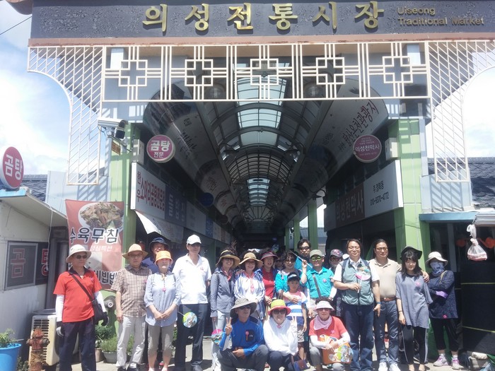 | ▲프로그램 참여자들이 의성 전통시장에서 포즈를 취했다.(의성군 제공) |