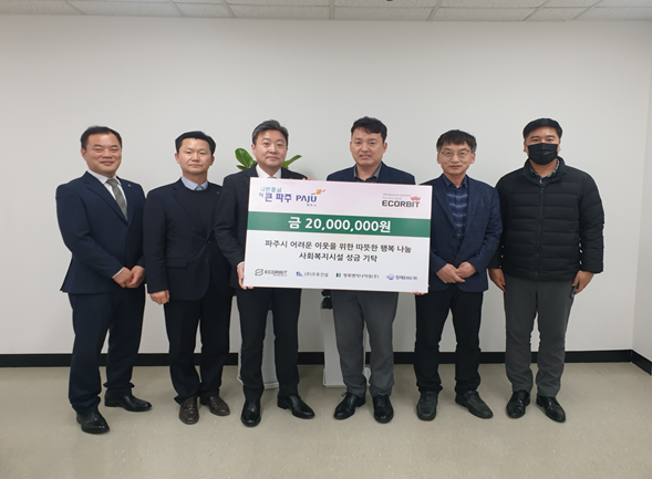 [로컬세계 = 이영원 기자]경기 파주시는 지난 2일 주식회사 에코비트워트 등 4개 관내 공공하수처리시설 위탁 운영사에서 중증장애인시설 ‘가없이 좋은 곳’에 성금 2000만원을 기탁했다고 3일 밝혔다.