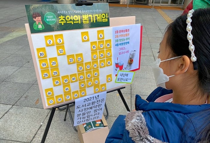 참여자 1인당 최대 3권까지 신간도서로 교환할 수 있도록 했으며, 거리두기로 부스 안 입장이 제한돼 기다리는 사람들을 위한 소소한 뽑기 게임 진행으로 지루함을 달래기도 했다.