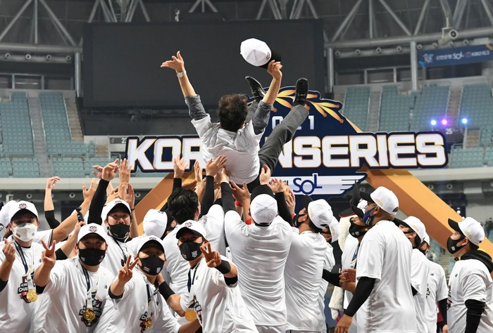 지난 10월 31일, 35년 만에 역대 두 번째로 열린 타이브레이크(순위 결정전)에서 삼성 라이온즈에 승리하며 ‘1군 진입 후 최단기간(7년) 정규시즌 우승’이라는 기록을 세운 kt 위즈는 이날 한국시리즈에서 승리하며 최단기간 통합 우승이라는 영예를 안았다.