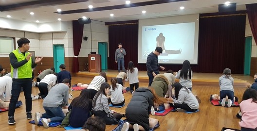 교육은 ▲심정지 확인과 도움 요청 ▲응급환자 흉부압박 및 기도유지 실습 ▲자동심장충격기(AED) 사용법 및 실습 등 골든타임을 지키기 위한 이론과 실습교육을 병행해 가르친다.
