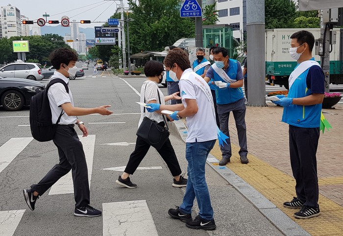 이번 캠페인은 코로나19 방역의 날(매월 넷째 수요일)을 맞아 홍보용 방역마스크를 나눠주며 진행했다. 민식이법 시행에 따라 사회적 이슈가 되고 있는 스쿨존 교통안전을 당부하고, 대중교통 이용시 마스크 착용 의무화 등 생활 속 거리두기를 홍보했다.
