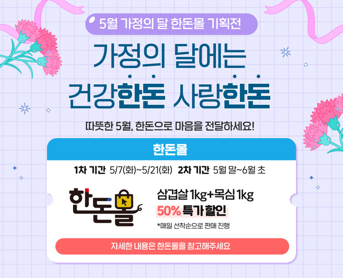 한돈자조금, 공식 온라인 쇼핑몰 한돈몰에서 7일부터 ‘가정의달 기획전’ 진행
