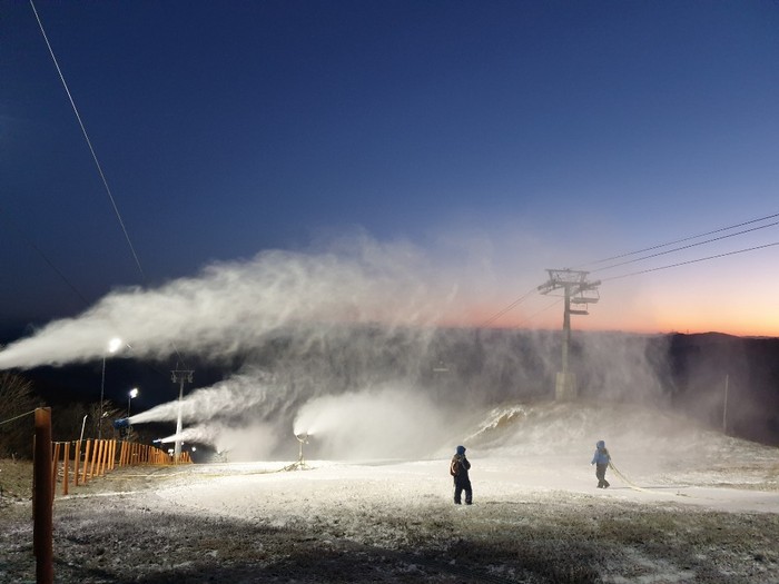 ▲하이원리조트 스키장이 11월 중순 개장을 목표로 ‘눈 만들기’에 여념이 없다.(하이원리조트 제공) |