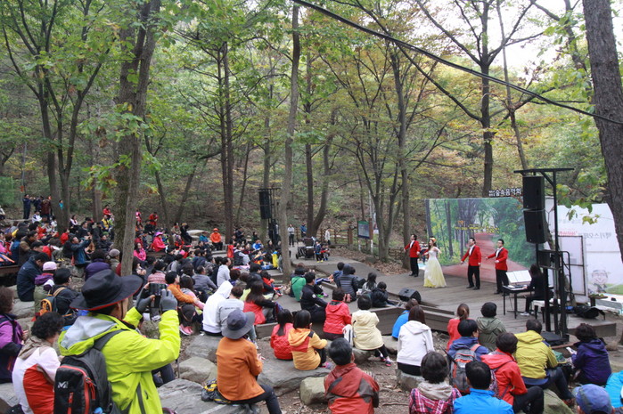 ▲30일 맥키스오페라 ‘뻔뻔(funfun)한 클래식’ 계족산 숲속음악회 2016년 마지막 공연을 관객들이 즐기고 있다. |