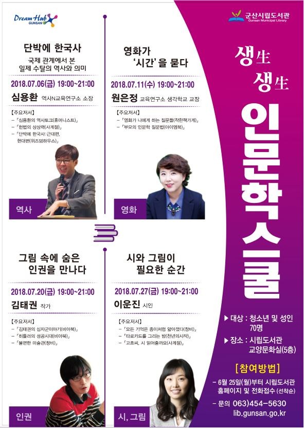 인문학 스쿨에 대한 참여 방법은 군산시립도서관 홈페이지(lib.gunsan.go.kr)에서 확인할 수 있다.