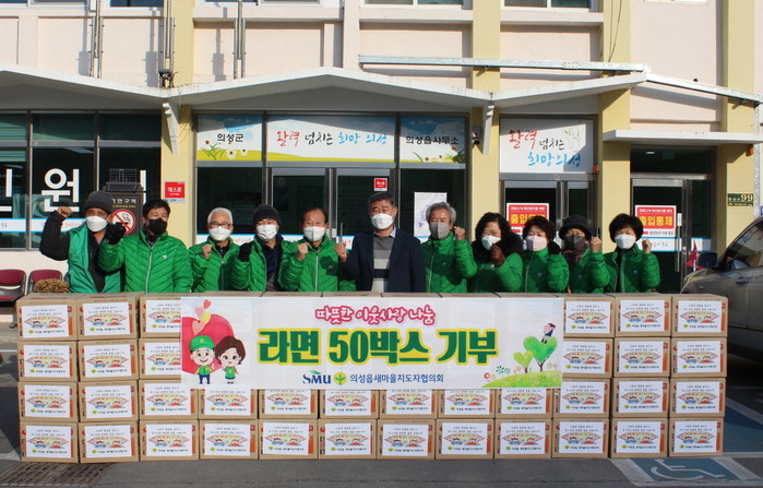 [로컬세계 박상진 기자]경북 의성읍 새마을지도자협의회(회장 김해석)는 민족 고유의 설을 맞아 지난 19일 의성읍사무소를 방문해 어려운 이웃을 위한 라면 50박스(80만원 상당)를 기탁했다.